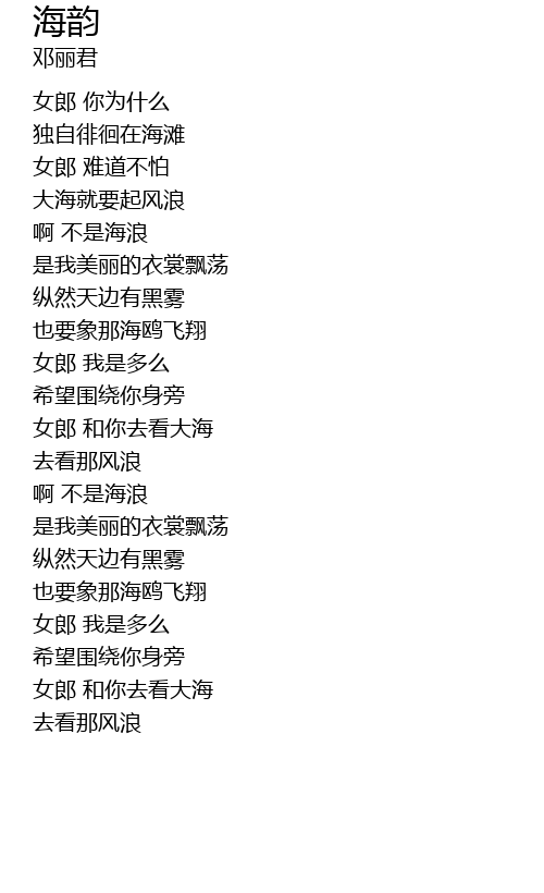 | [01:31.03] | nǚ láng hé nǐ qù kàn dà hǎi |