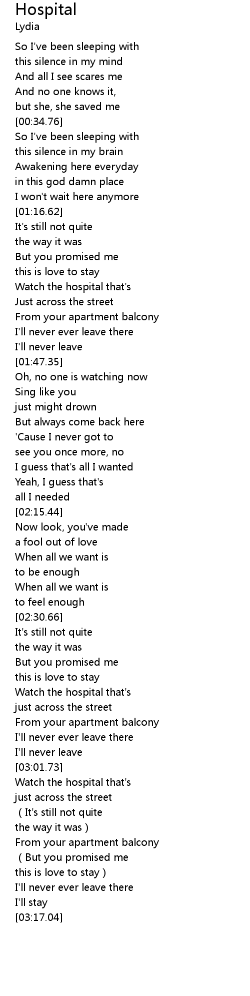 | [03:02.10] | Watch the hospital that' s |