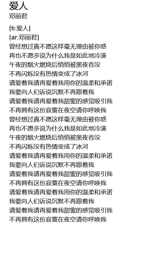 | [00:53.870] | 请爱着我请再爱着我用你的温柔和承诺 |