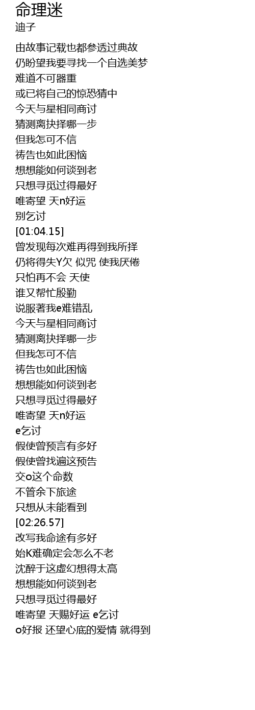 | [02:58.46] | 唯寄望 天赐好运 e乞讨 |