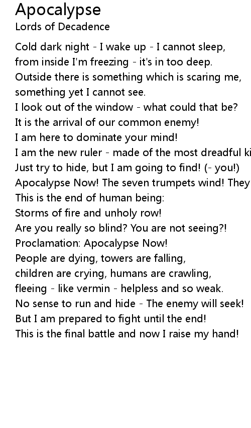 Apocalypse Now! The seven trumpets wind! They wind! |