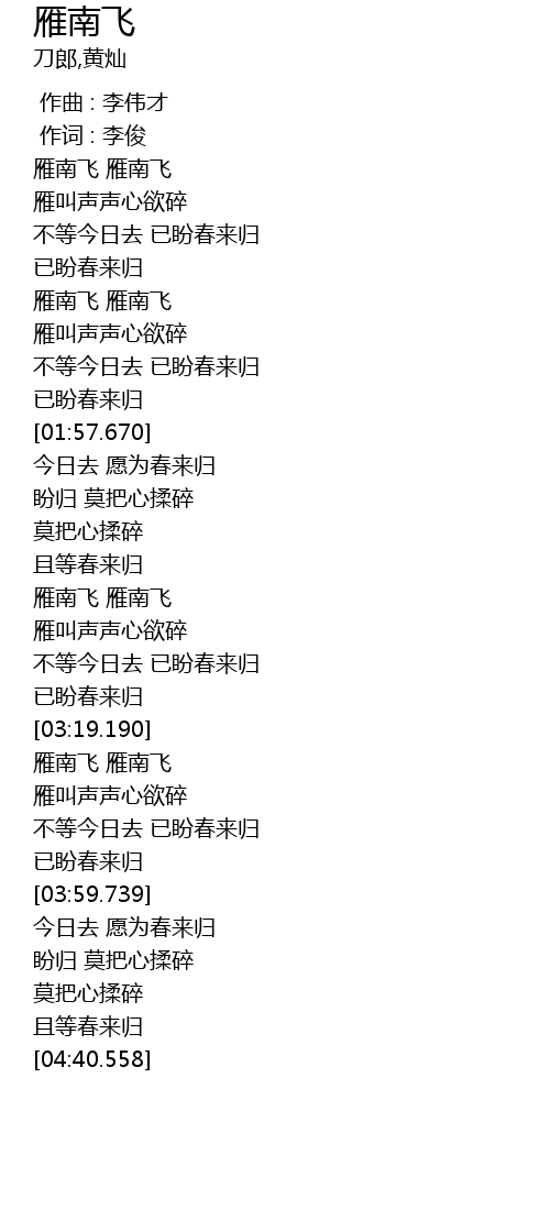 | [03:19.700] | 雁南飞 雁南飞 |