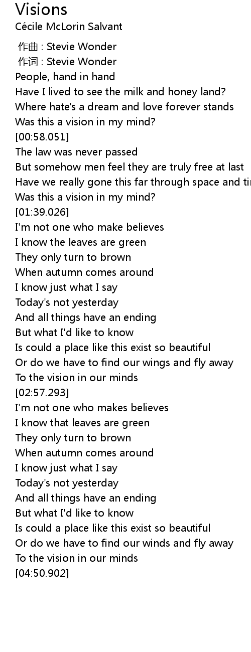 | [00:01.000] | 作词 : Stevie Wonder |