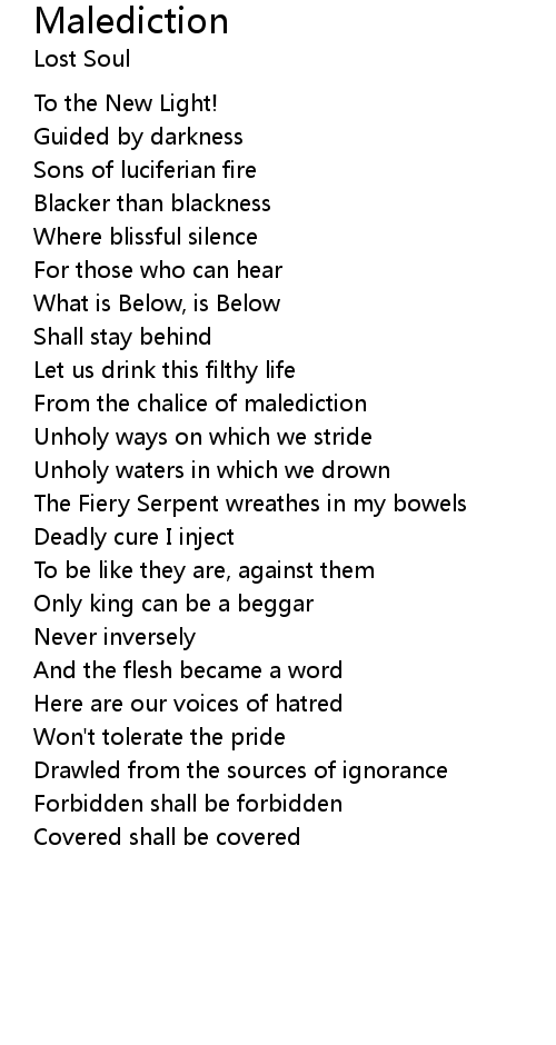 From the chalice of malediction |