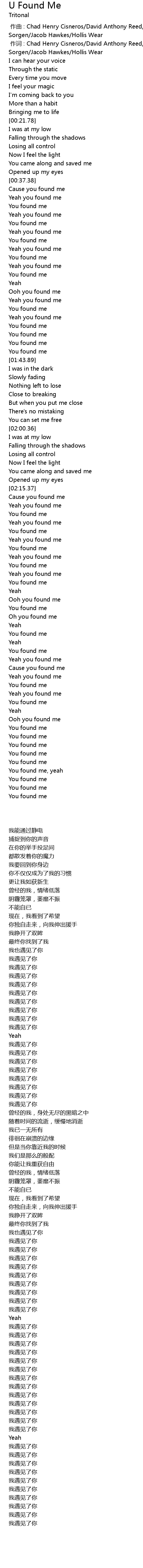 | [00:38.24] | Cause you found me |