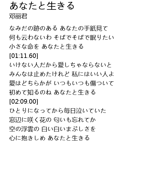 | [01:55.93] | 初めて知るのね あなたと生きる |