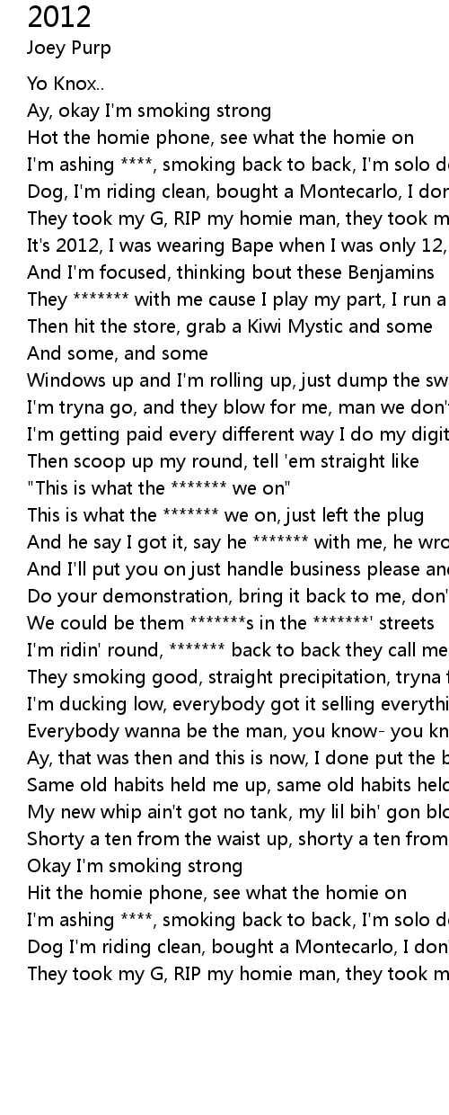 I'm ridin' round, ******* back to back they call me Purple now |