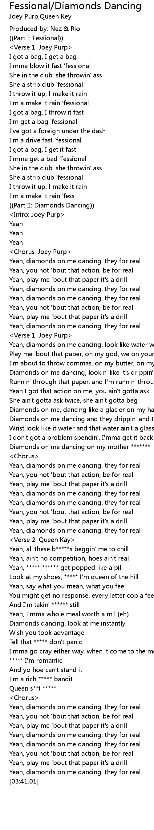 | [01:59.20] | Diamonds on me dancing on my mother ******* |
