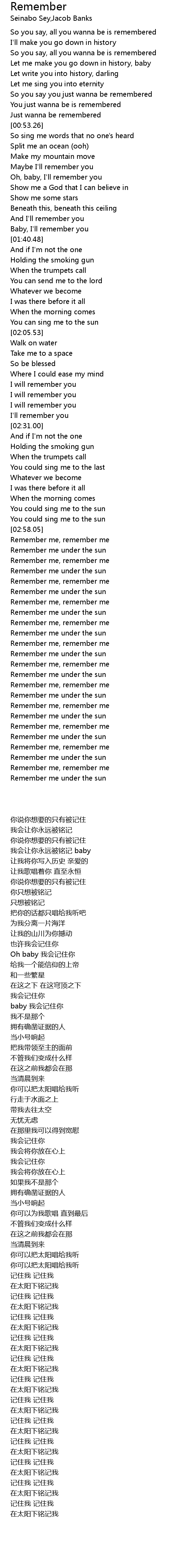 Remember me under the sun |