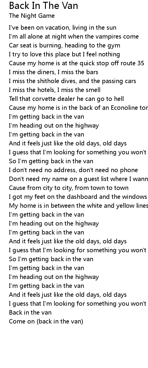 Back In The Van 歌词