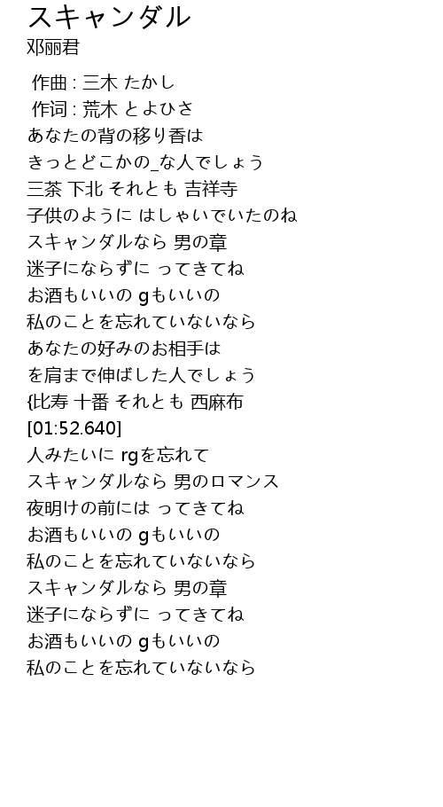 | [02:00.430] | スキャンダルなら 男のロマンス |