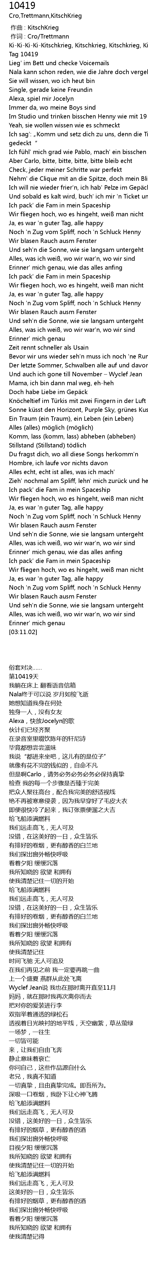 | [00:57.03] | Ich pack' die Fam in mein Spaceship |