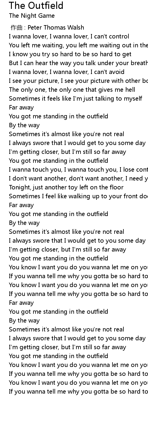 | [01:22.384] | You got me standing in the outfield |