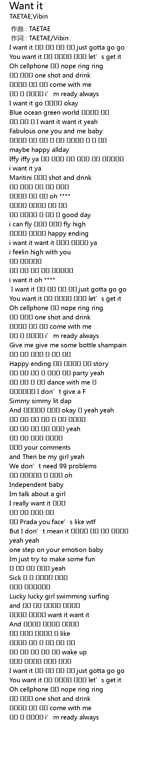 | [03:02.030] | I want it 아무 말도 필요 없이 just gotta go go |