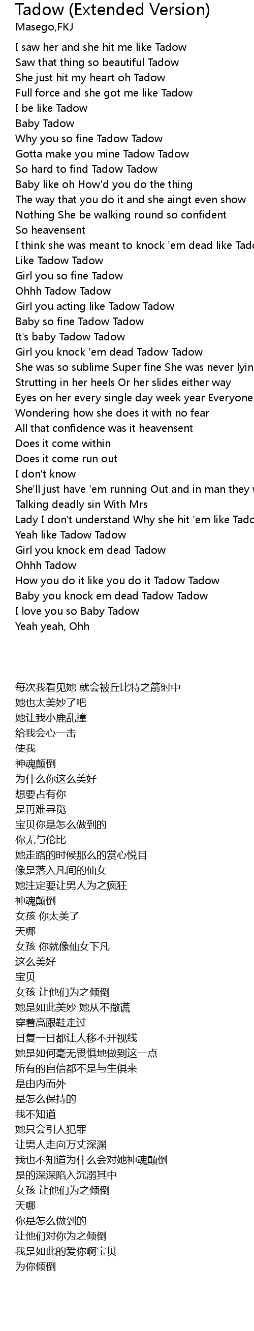 Lady I don't understand Why she hit 'em like Tadow Tadow |
