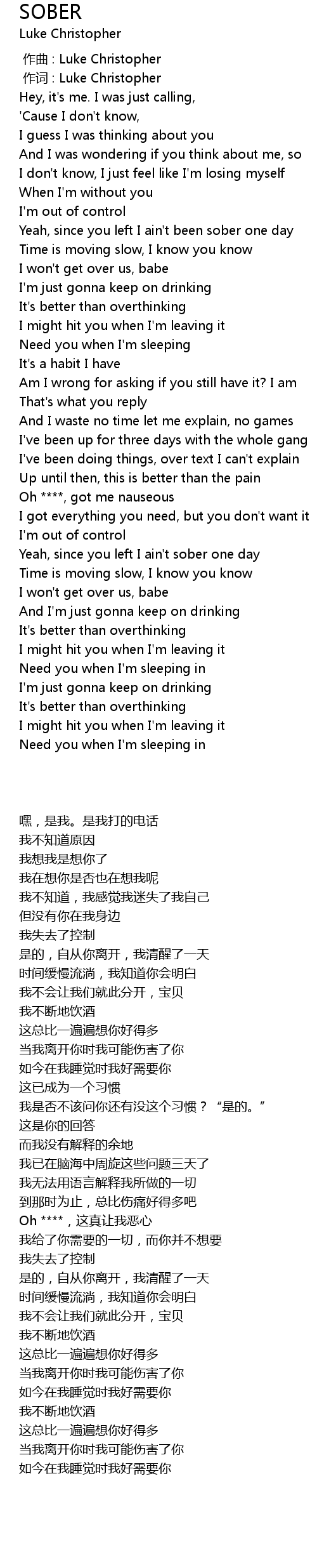 | [00:00.007] | 作词 : Luke Christopher |