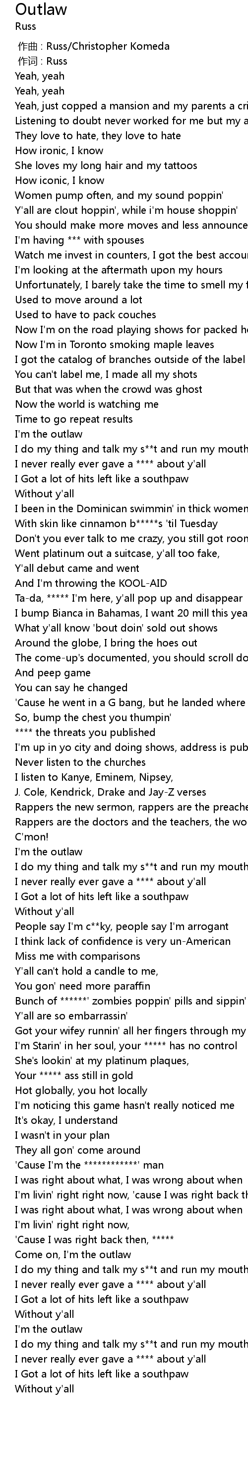 | [03:00.10] | I never really ever gave a **** about y'all |