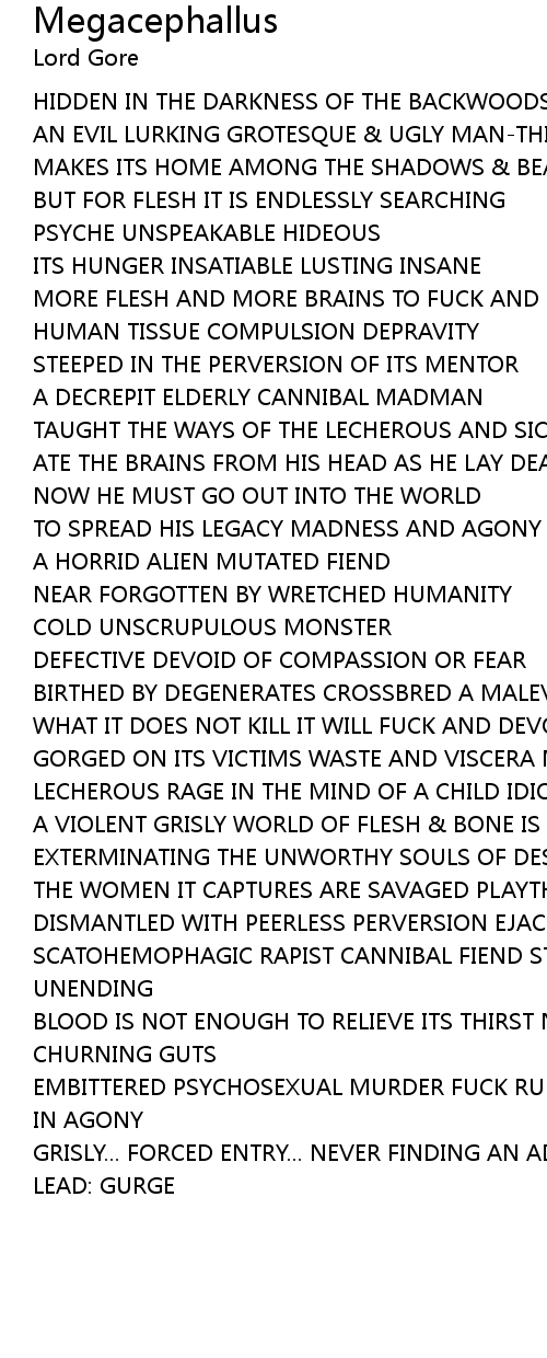 BIRTHED BY DEGENERATES CROSSBRED A MALEVOLENT HULK OF DESTRUCTIVE DEFORMITY |