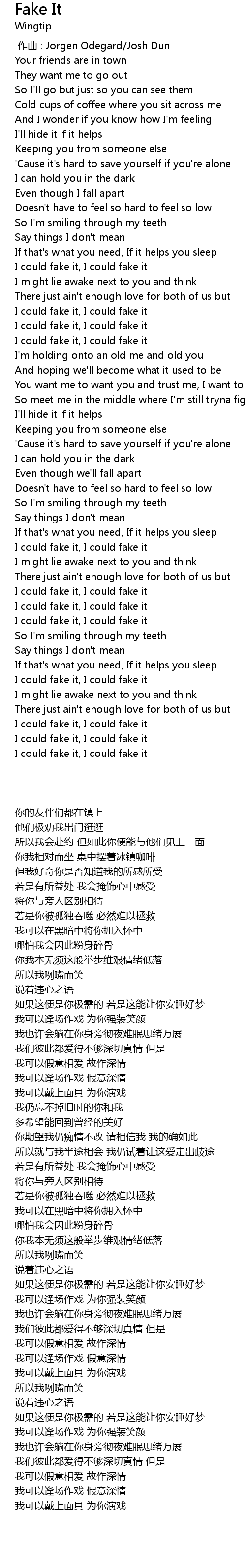 | [01:08.340] | 我可以假意相爱 故作深情 |