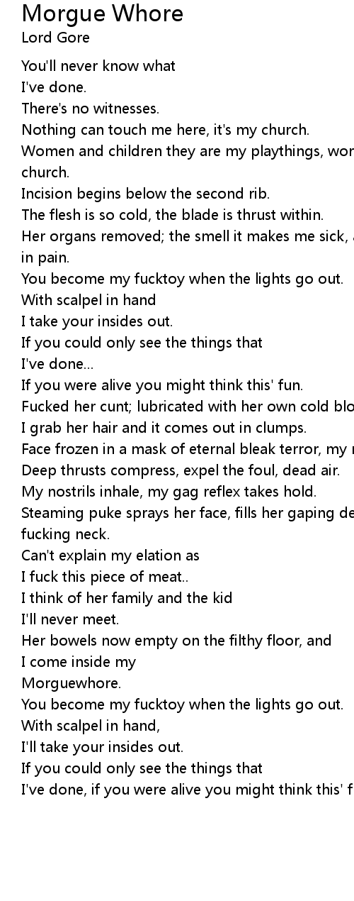 Her organs removed; the smell it makes me sick, and my dick gets so hard, it's in pain. |