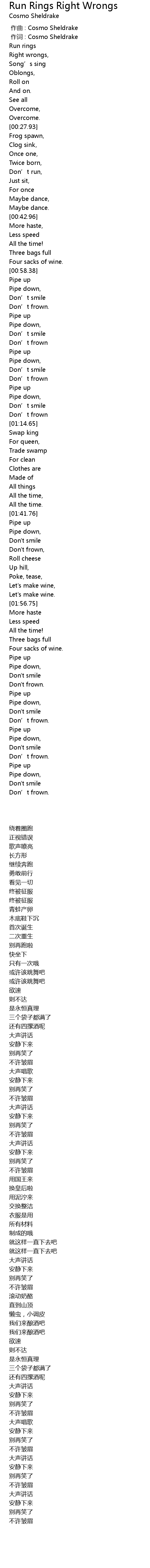 Run Rings Right Wrongs 歌词