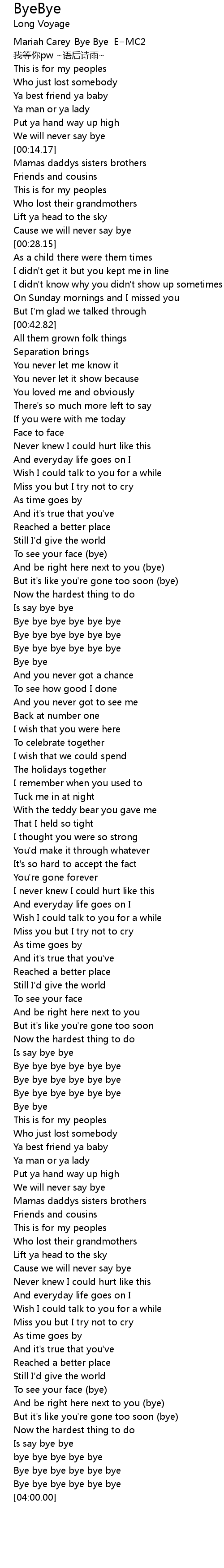 | [00:00.00] | Mariah CareyBye Bye E MC2 |