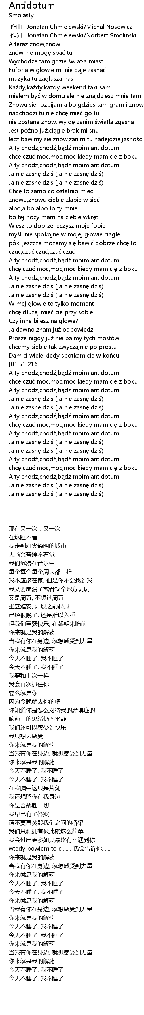 | [00:51.605] | A ty chodź,chodź,bądź moim antidotum |