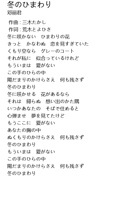 | [00:25.680] | 冬に咲かない ひまわりの花 |