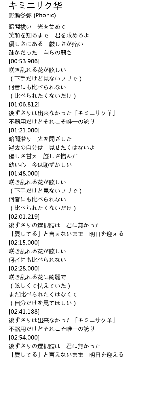 | [01:07.125] | 後ずさりは出来なかった「キミニサク華」 |
