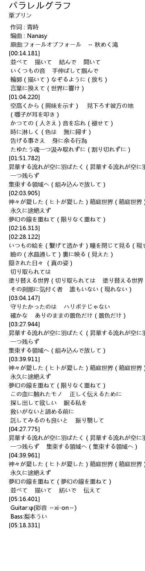 | [05:17.229] | Guitar:φ(彩音 ~xi-on~) |