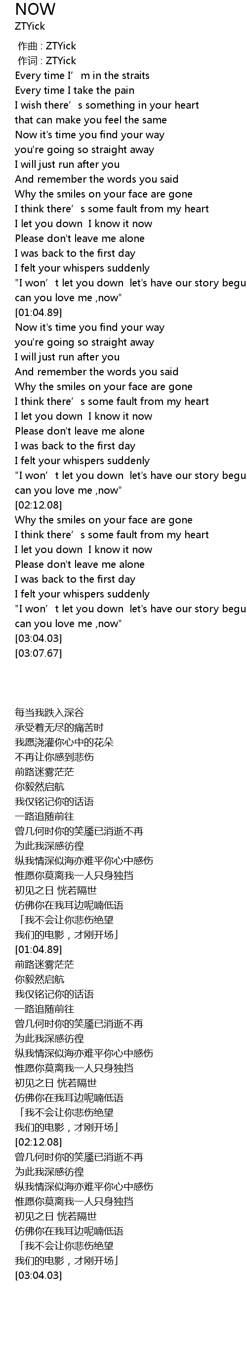 | [00:01.000] | 作词 : ZTYick |
