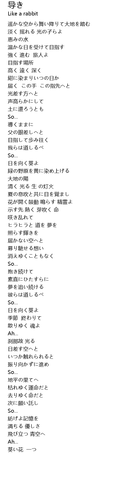 | [02:39.600] | 日を向く葵よ |
