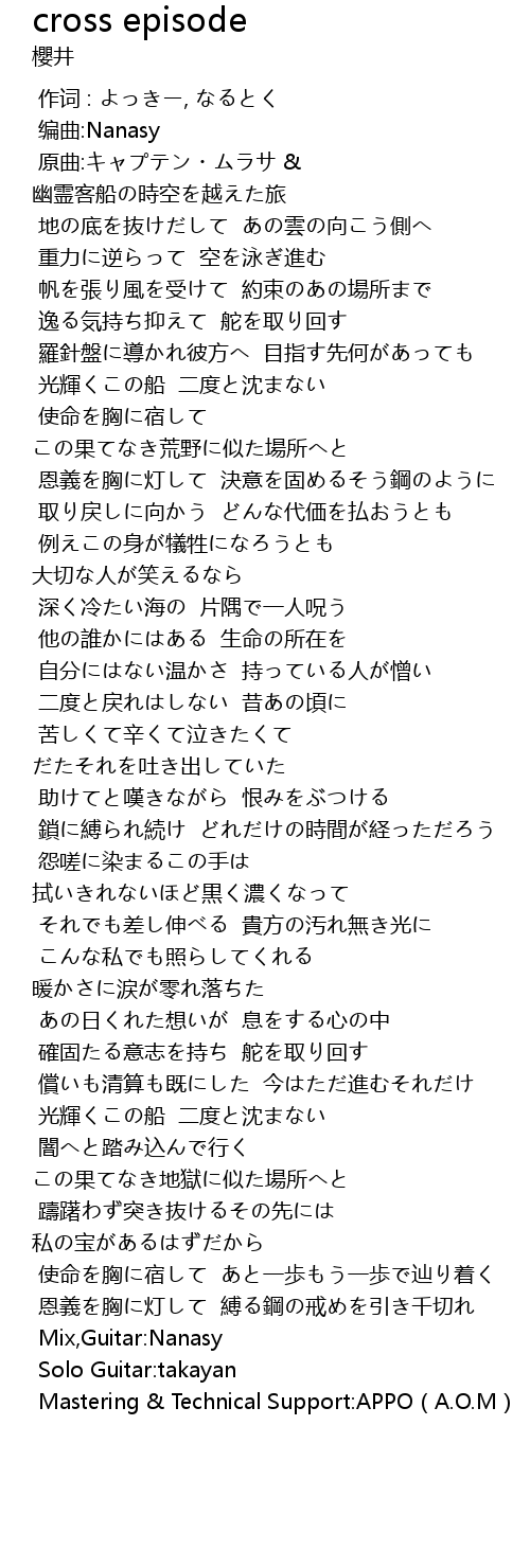 | [04:03.456] | Mix, Guitar: Nanasy |