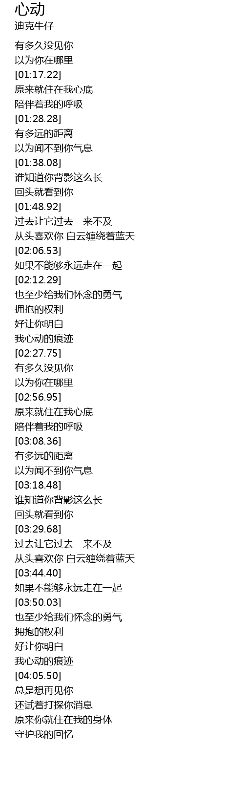 | [01:09.62] | yǒu duō jiǔ méi jiàn nǐ |