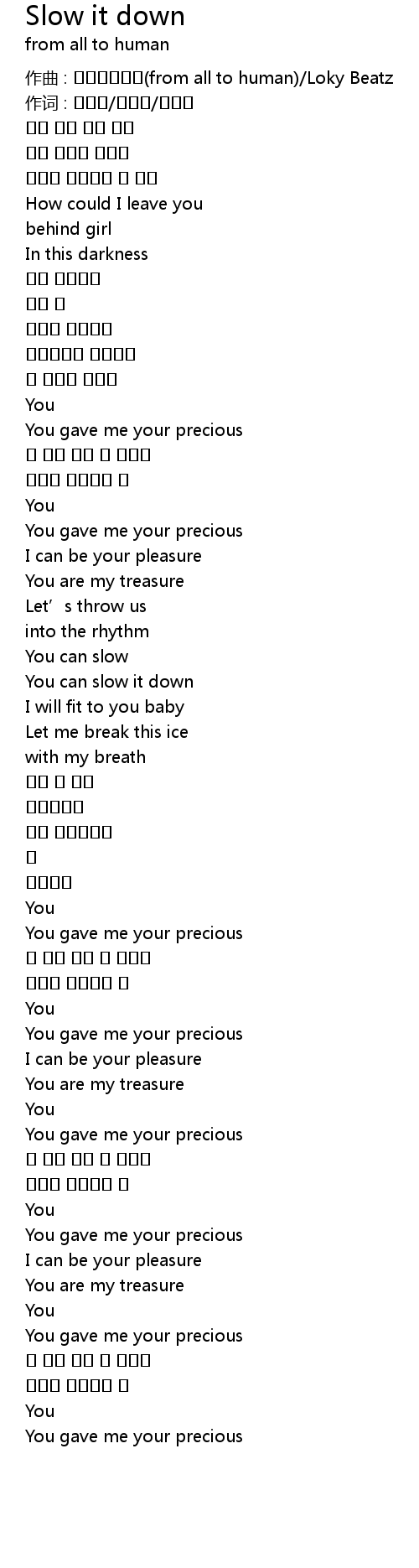 | 歌曲 | Slow it down |