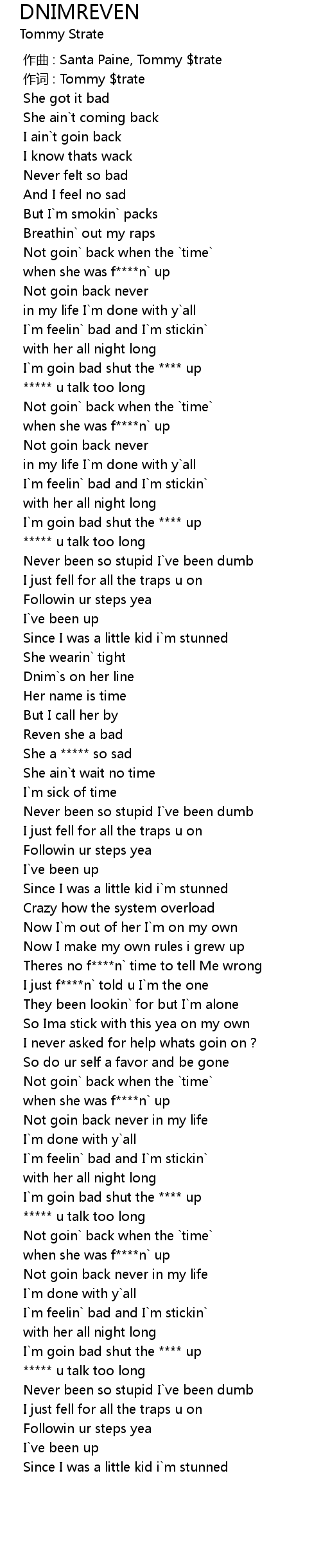 | [02:22.252] | Theres no f****n` time to tell Me wrong |