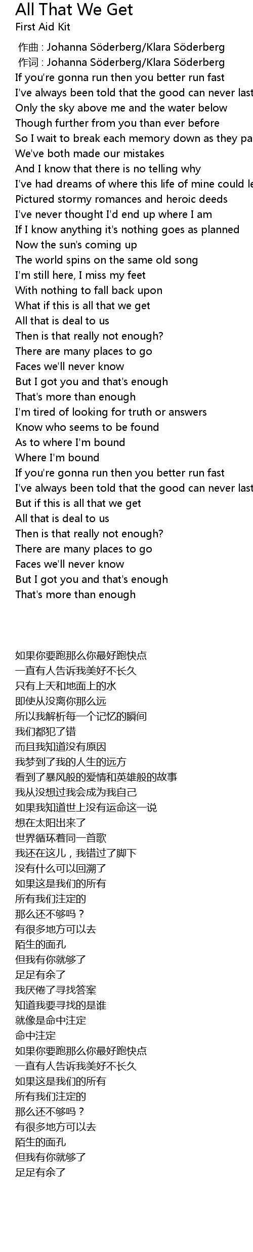 | [00:01.000] | 作词 : Johanna Söderberg/Klara Söderberg |