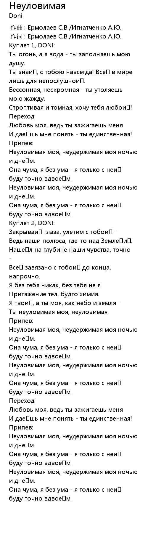 Неуловимая моя, неудержимая моя ночью и днём. |