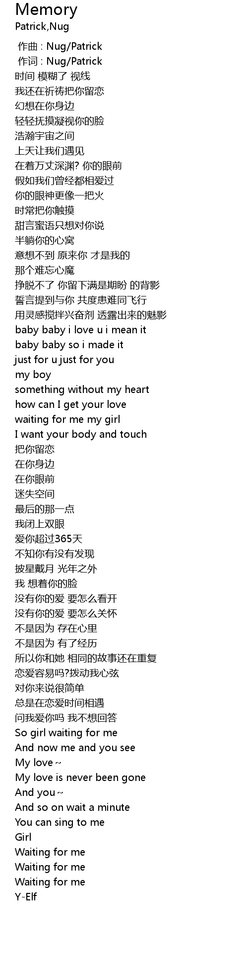 | [00:01.000] | 作词 : Nug/Patrick |