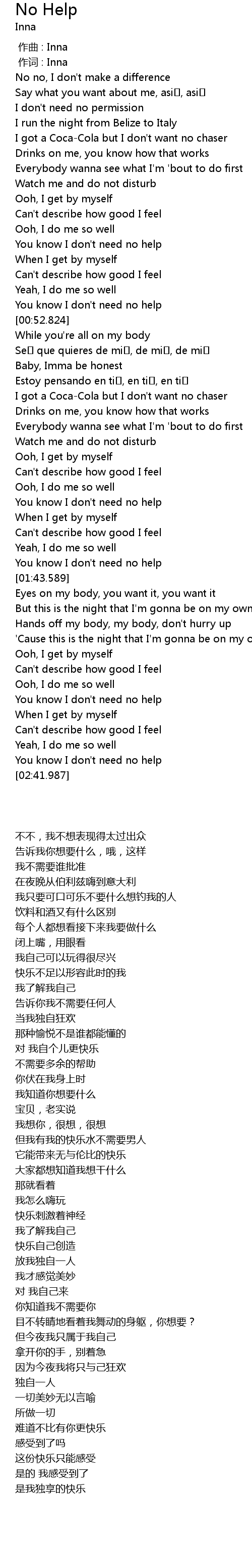 | [02:09.892] | Hands off my body, my body, don' t hurry up |