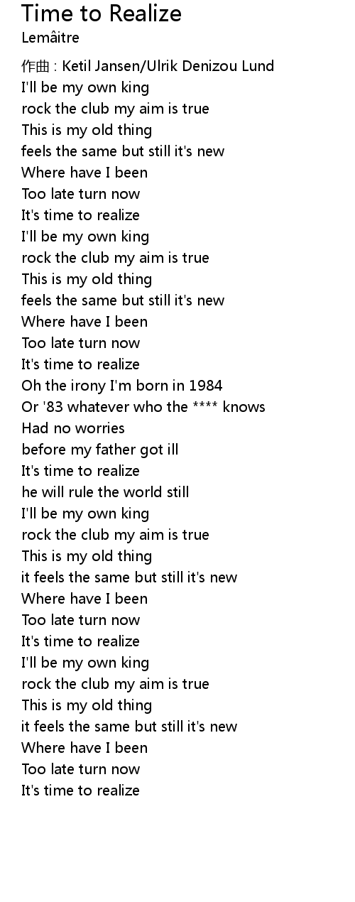 | 歌曲 | Time to Realize |