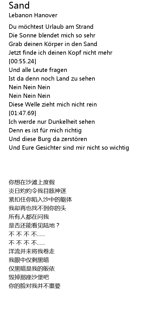 | [00:45.33] | Grab deinen K rper in den Sand |