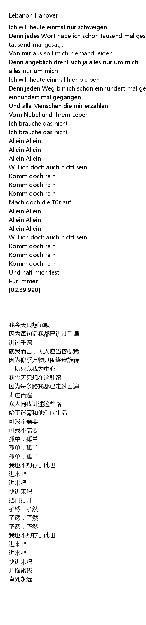 | [00:16.500] | Von mir aus soll mich niemand leiden |