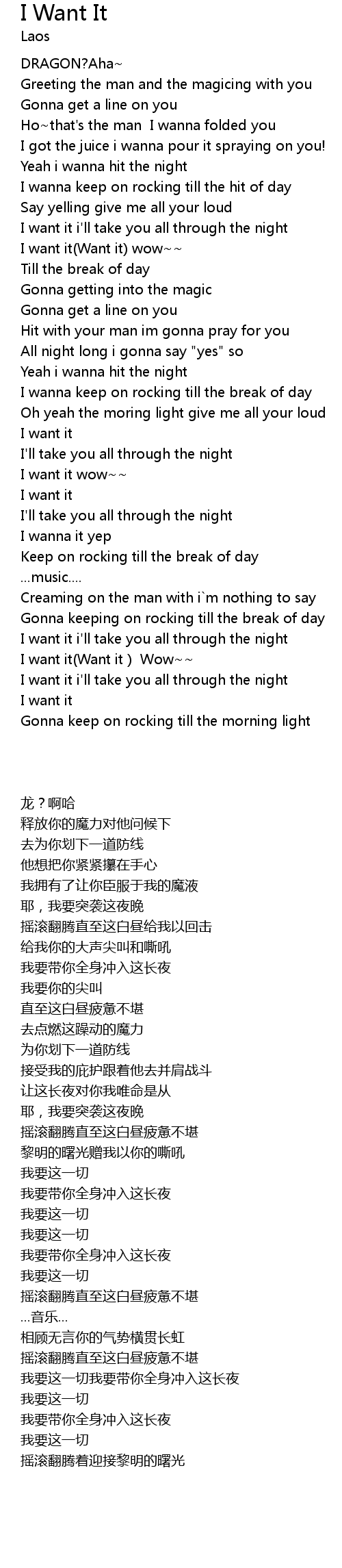 I want it(Want it ) Wow~~ |