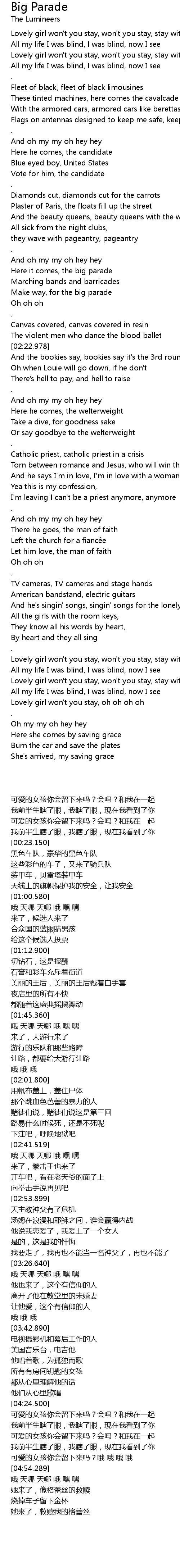 | [01:22.530] | 石膏和彩车充斥着街道 |