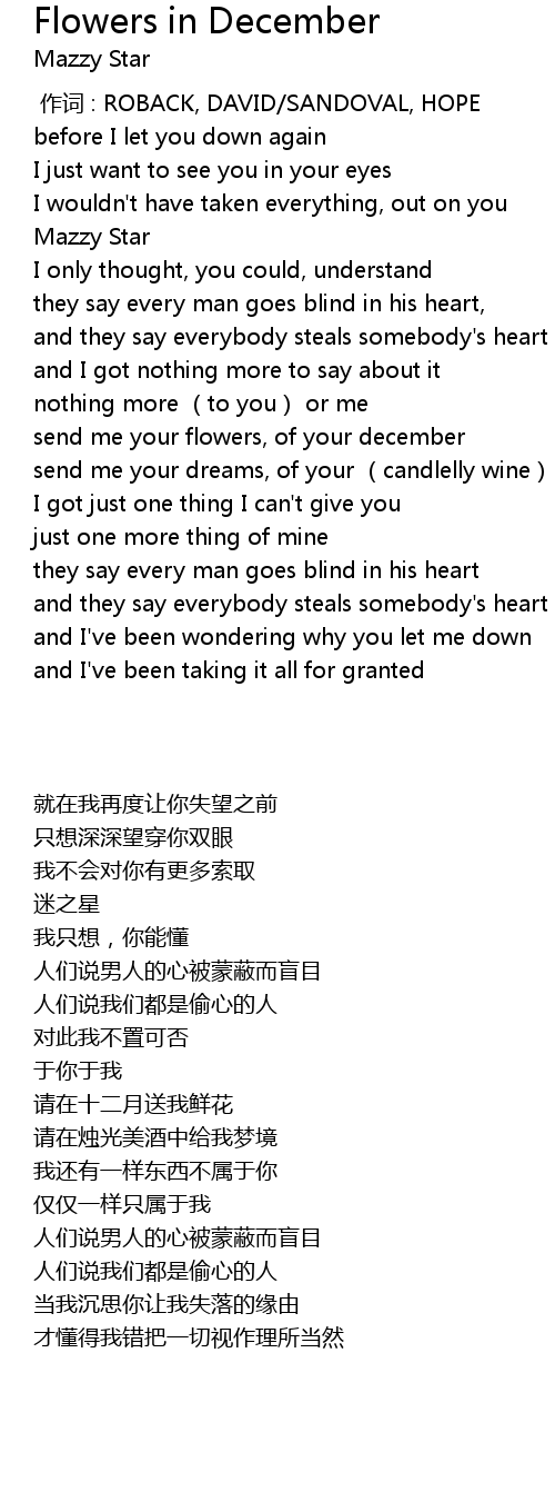 | [01:53.36] | send me your flowers, of your december |