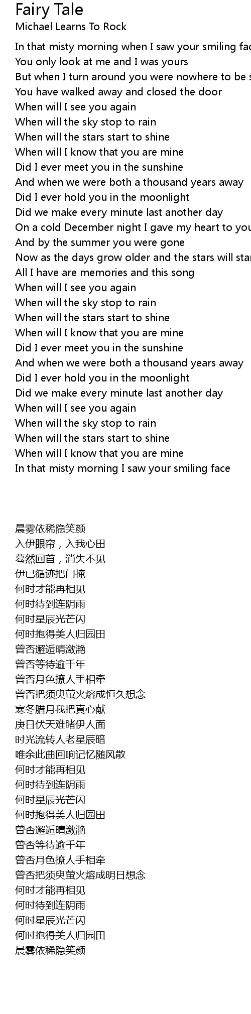 In that misty morning when I saw your smiling face |
