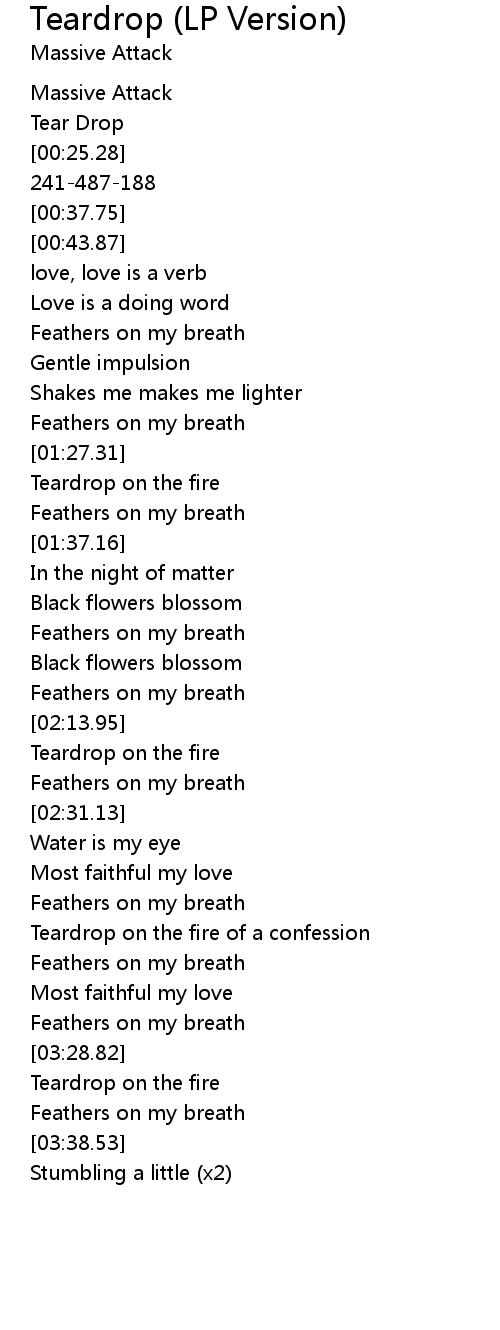 | 歌曲 | Teardrop (LP Version) |