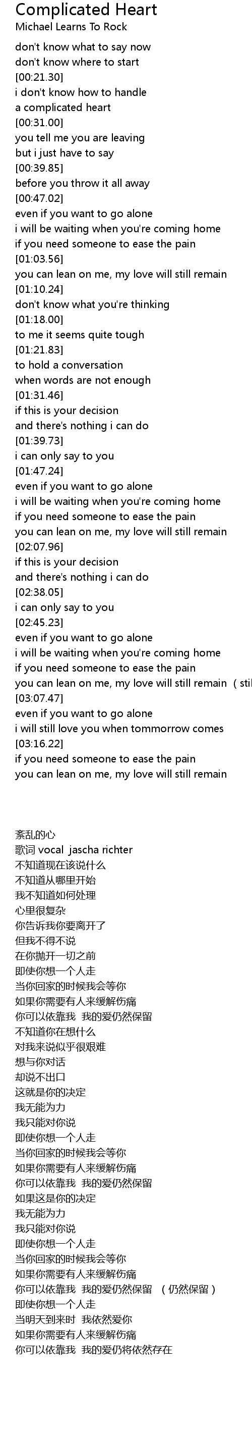 | [02:59.51] | you can lean on me, my love will still remain still remain |