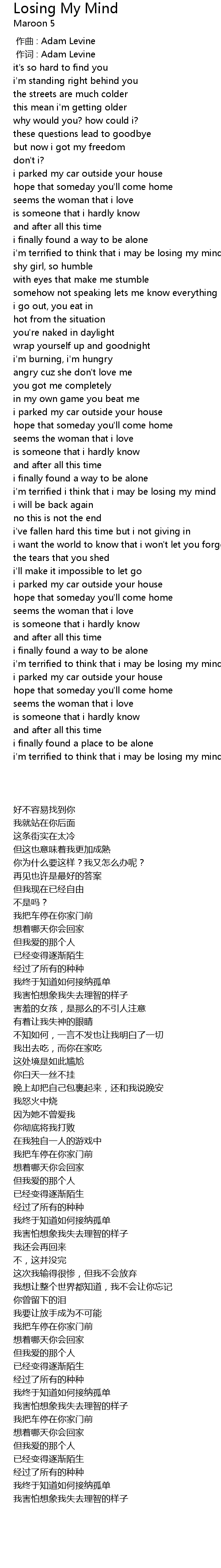 | [00:00.00] | 作曲 : Adam Levine |
